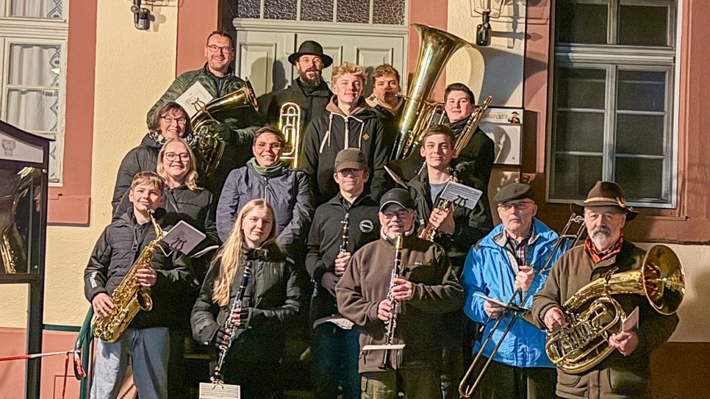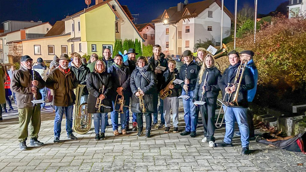 Gemeinsam haben wir uns an der Rudi-Wünser-Halle getroffen, um dann – angeführt von St. Martin auf dem Pferd – mit unseren Klängen durch die Ludwigstraße bis zum Einhaus zu ziehen. Dort wartete eine gemütliche Bewirtung mit Martinsbrezeln, Kinderpunsch und Glühwein auf alle Teilnehmenden. 🥨☕🍷